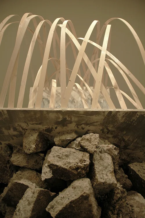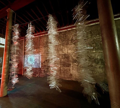 The Hala (pandanus) tree is ubiquitous across Oceania. It is resilient, and all of its parts are utilized. Mo‘ōlelo Hawai‘i (Hawaiian folklore) is full of tales about the Hala being a finder of water and a harbinger of endings and/or new beginnings. In this sculptural abstraction, The roots are made of steel—the same material that has enabled the path from Mauka (mountain) to Makai (ocean) to be broken by skyscrapers. The trunk and fronds are comprised of plastics intercepted from the waste stream and community sourced through social media. The reclaimed and collected plastics represent the present state of our planet—ever-changed by our forced reliance upon fossil fuels. The solar powered beacon of light represents the possibility that our future can be brighter than our present. This sculpture stands tall and defiant because standing tall and speaking in defiance is our best chance at a better future.